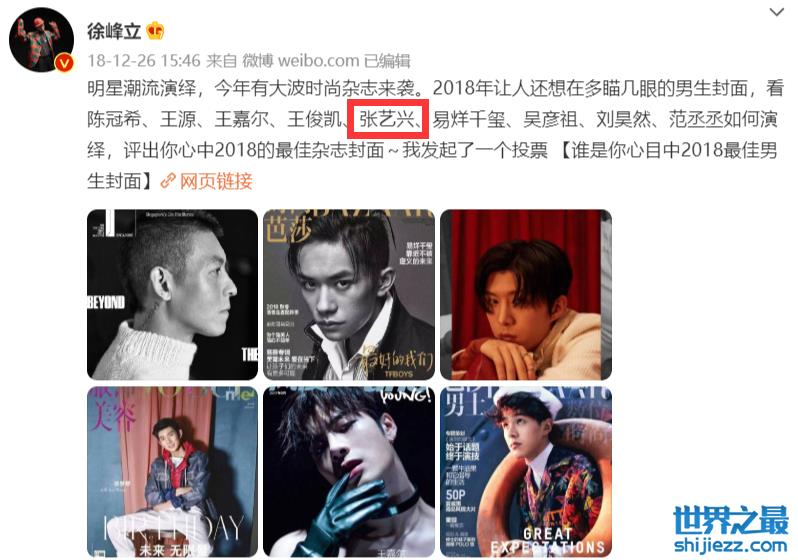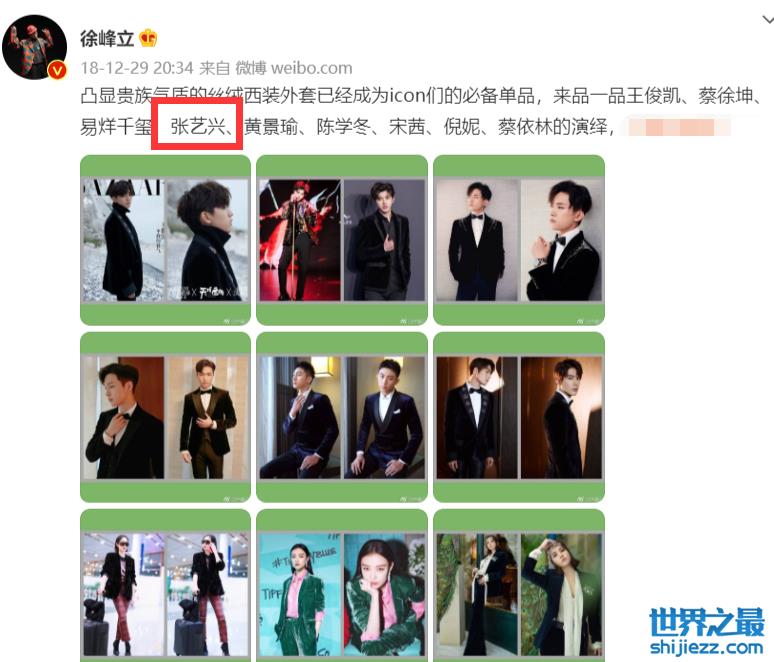 从徐峰立的账号中,搜索有关张艺兴的名字,显示了很多条动态,不过并没有为张艺兴拍摄时尚大片,而且发布了一些与张艺兴有关的穿搭动态。