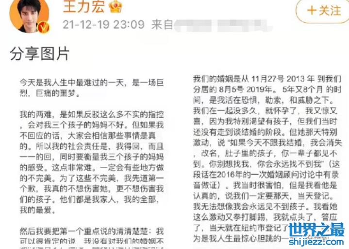 相对于前妻条理清晰的长文,王力宏显得逊色许多。