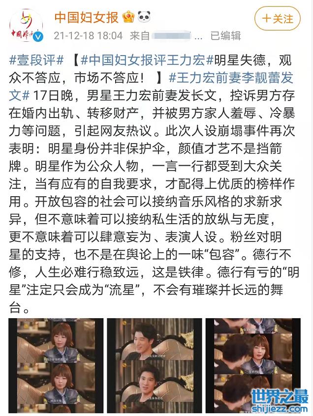 中国妇女报也已点评王力宏,第一次直言“明星失德,观众不答应,市场不答应”,第二次点名全职主妇的“绝望”处境,探讨深刻。