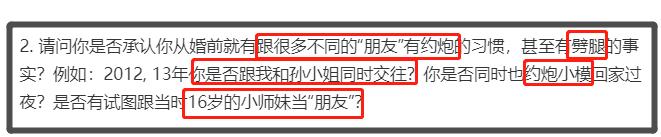 第二,数次的约炮劈腿,你承不承认?这一点中还提到了与by2中的妹妹yumi同时交往之事。并且第二问里还夹杂了5问。