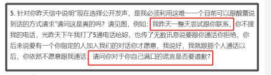 第五,承不承认自己满口谎言?这一点李靓蕾同样是针对王力宏此前的回复里指控李靓蕾拒绝沟通之事,李靓蕾质问之下还晒出证据,证明自己积极联系王力宏,拒绝沟通的反而是王力宏自己。