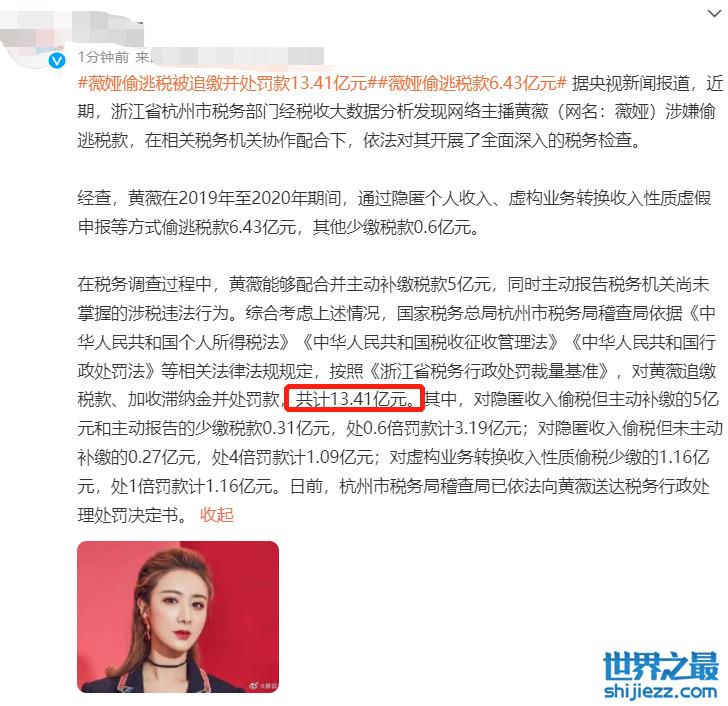 顶级网红薇娅翻车!隐匿个人收入被罚13.41亿,曾低调补缴5个亿 ...