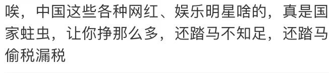 还有网友称普通人兢兢业业地工作依法纳税,而这帮有钱人却偷税漏税,希望国家狠狠地罚他们。