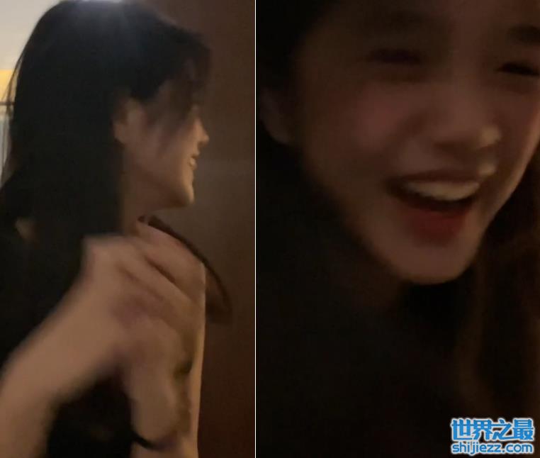 值得注意的是,张思捷在跳的正高兴时,突然有人进门打断了她的视频录制。张思捷听到声音先是惊讶扭头,然后害羞地笑了起来,随后大笑着关了镜头。从张思捷转头后的侧颜可以看出她的五官很精致,脸颊的肉肉幼态感十足,显得她非常可爱。