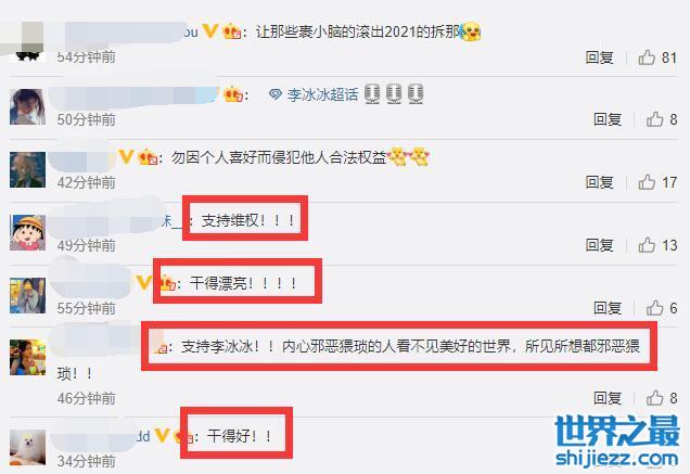 李冰冰维权后,不少网友发声:“干得漂亮”,“支持维权”,“支持李冰冰!!内心邪恶猥琐的人看不见美好的世界,所见所想都邪恶猥”。