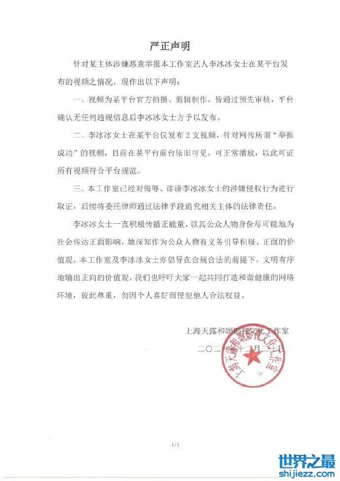 近日,李冰冰入驻某平台,发布两条视频后,因穿着问题被一位儿科医生举报投诉。该事件发酵四天的时间,李冰冰工作室终于正式维权,列出三点:1、视频通过预先审核,平台确认无任何违规行为,李冰冰方予以发布。2、李冰冰发布的两条视频可正常播放,证明符合平台规范。3、会对侮辱,诽谤李冰冰的侵权行为进行取证,将会追究相关责任。
