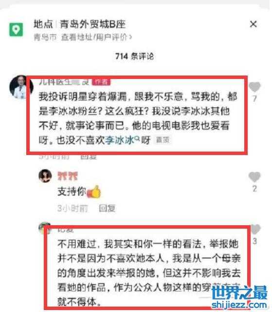 当时还有网友力挺儿科医生,说自己作为一名母亲,本人没有不喜欢李冰冰,只是作为公众认为穿着就是不得体。后来,儿科医生还补充说:“我投诉没关系,成功不成功是某音平台的事儿”。