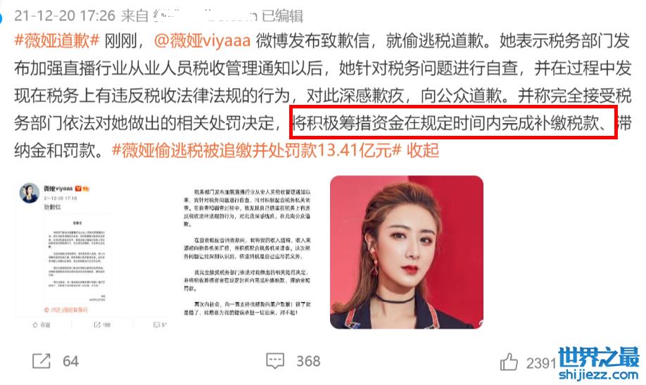 薇娅发文道歉,称会补缴13亿罚款,36岁身价90亿仅次老干妈