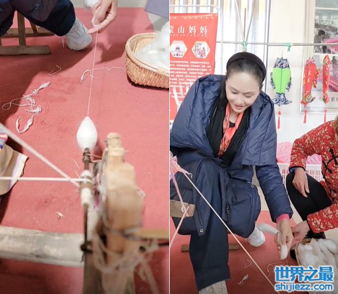 于文华素颜露面体验纺织机!手扯蚕丝动作熟练,打扮朴素一脸笑容 ...