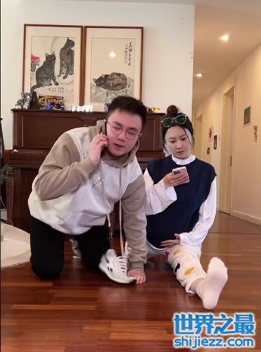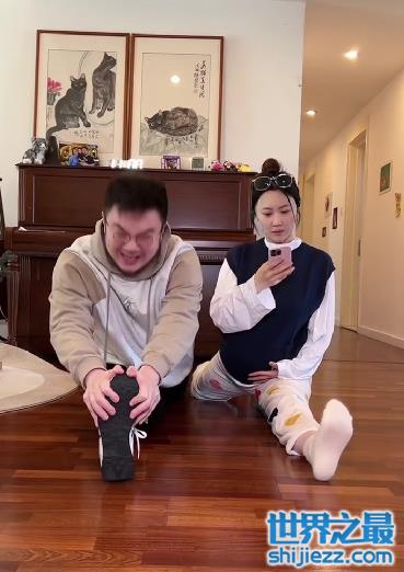 近日,宋丹丹儿媳博古晒出了和巴图两人劈叉的视频。视频中博古穿着宽松的裤子,一只手拖着肚子,一只手拿手机,在地板上做劈叉,脸上还敷着面膜,看起来十分的轻松。而一旁的巴图用力地掰着脚,脸憋得通红,露出痛苦狰狞的表情。