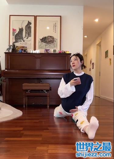 宋丹丹儿媳挺6个月孕肚劈叉!皮肤白皙眼睛好大,玩手机一脸轻松 ...