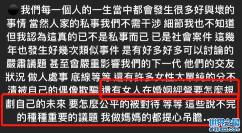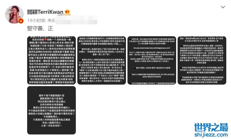 在关颖的文章里面可以看到,她十分同情李靓蕾,觉得社会里面一些事件容易影响到下一代,特别是女性在社会上太单纯,容易被自己的偶像欺骗,甚至在担心女人在婚姻里如何规划自己未来,要怎么被公平的对待等等,看来关颖在认真的思考女性在家庭和社会上的问题。