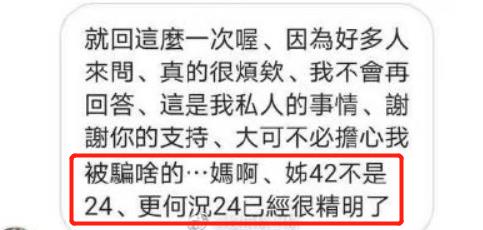 恋爱中的女人可不吃这一套,陈乔恩完全不领情,公开回怼网友真的很烦,自己已经是42岁的人了,也不是24岁,即便是24岁也已经很成熟,能分辨是非。