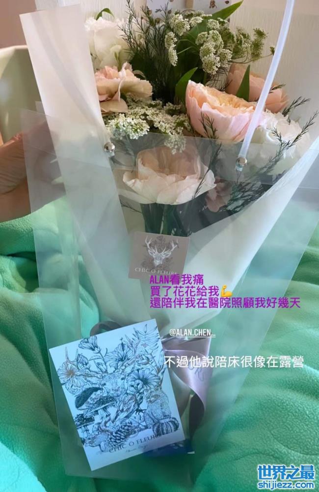 陈乔恩说男友ALAN一直在陪床,还因为看她痛,买了花花给她, 隔着屏幕都能脑补到她小女生一样的语气了~