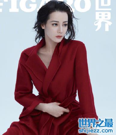 迪丽热巴身穿红色大衣,一侧领口敞开露出精致漂亮的锁骨,一头湿法凌乱,再配上左手的手表,整套造型性感又不失知性优雅。
