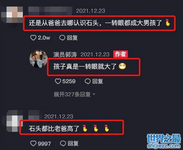网友们看到后不禁有些感慨道“当年看综艺节目时,石头还是个小孩子,时间真快都长这么大了”,郭涛笑着回复道:“孩子真是一转眼就大了”,还有细心的网友发现石头都比爸爸高了。