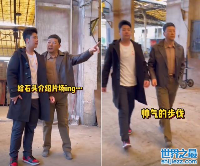 石头探班爸爸拍戏现场!打扮成熟小肚腩明显,14岁身高超过爸 ...