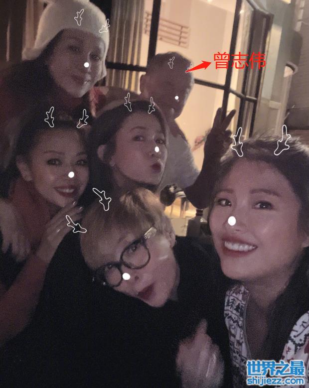 值得注意的是,曾志伟被身边的美女紧密贴脸,美女的手还捏着曾志伟的脸颊,曾志伟则满脸笑容地任美女“处置”,两人举止非常亲密。看得出来大家经常在一起聚会,所以才能如此亲昵地互动合照。
