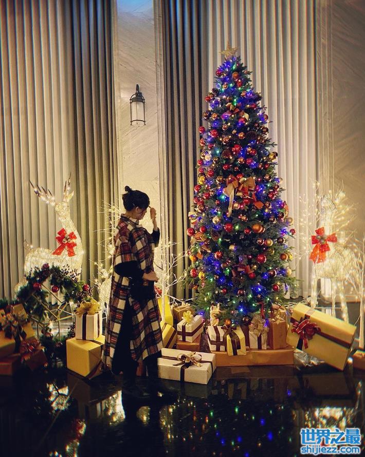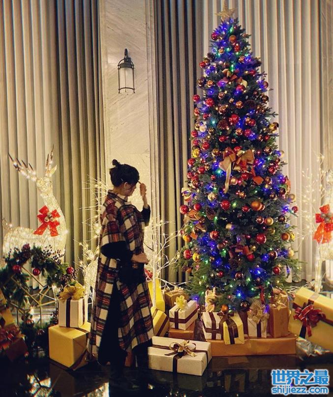 在陈乔恩分享的照片中,可以看到她穿着一身格子大衣,头上扎着丸子头。陈乔恩站在充满装饰品的圣诞树下,四周散落着包装精美的礼物,看起来都很大一个,陈乔恩在里面显得格外娇小。