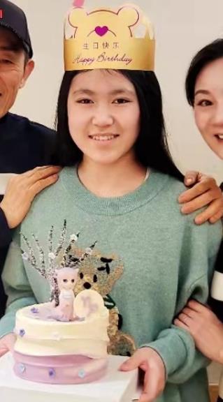 这是张艺谋的小女儿张壹娇的十五岁生日。只见张壹娇头上戴着纸质的皇冠披着长发,五官清秀和妈妈很像。她身上穿着浅绿色的套头毛衣,手上端着紫色的生日蛋糕,蛋糕上还做了树枝和人偶,十分精致。