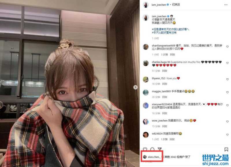 12月27日,陈乔恩在ins更新一组美照,配文:“你喜欢冬天还是夏天,我喜欢人间四月天”,陈乔恩和男友Alan已经相爱两年多的时间,二人一直同居在一起,感情非常稳定。