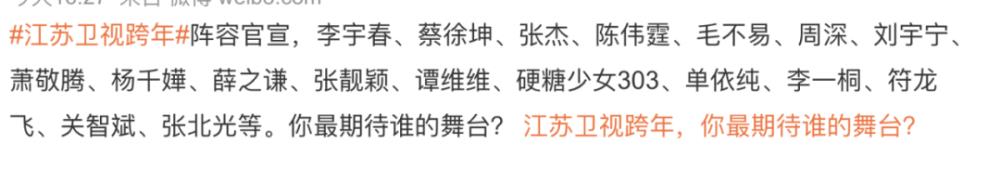 江苏卫视还兼顾了流量,去年在浙江的蔡徐坤,今年就加盟了江苏卫视。