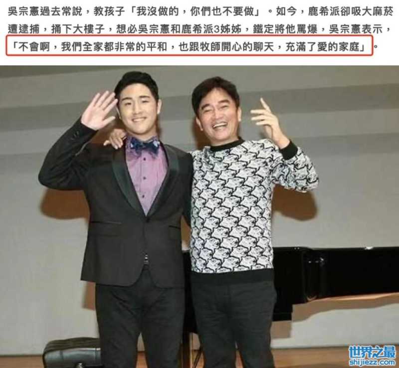 就在早些时候,吴宗宪儿子鹿希派凌晨在路边做了抽违禁品的事情,而被警方逮捕。