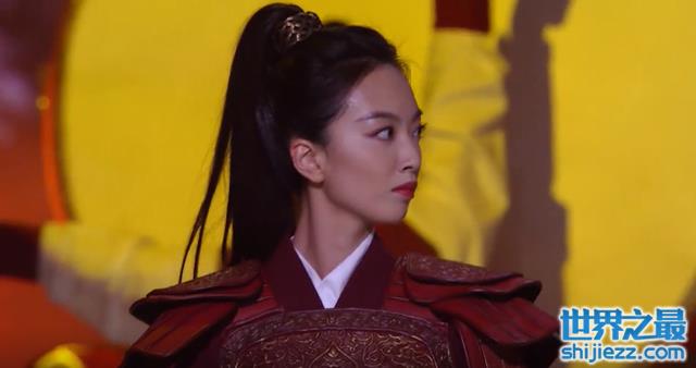 在旁白讲完后,罗平章在登场的时候已经换一件衣服,她梳着高马尾,画着剑眉大红唇醒目,眼神坚定又认真,非常帅气。罗平章穿一身红色的古装铠甲,显得她又飒又帅。