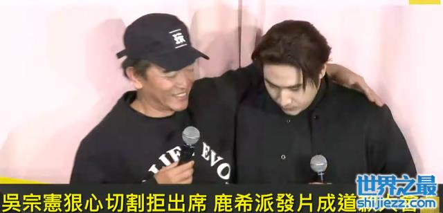在鹿希派被记者提问的时候,突然父亲吴宗宪带着黑色的帽子,身穿黑色的衣服从外场低调出现在记者会上,他一上来就对着儿子微笑,抬手搂住儿子,并且拍了拍儿子的肩膀,似乎在安慰鹿希派。