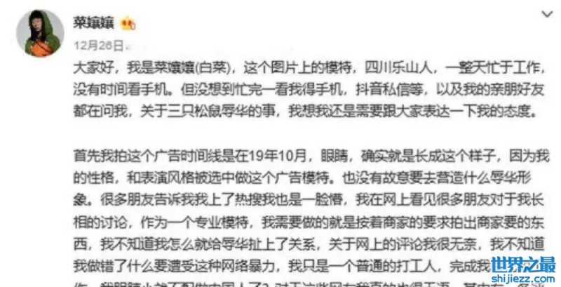 还有网友放出了她以前的视频,视频中这位模特的动作手势还被网友们定性为歧视亚裔。面对网上铺天盖地的恶评,模特再次做出了回应,表示网上流传的视频是网友们恶意截取的,只是一个舞蹈动作,发布者这是在故意歪曲事实。