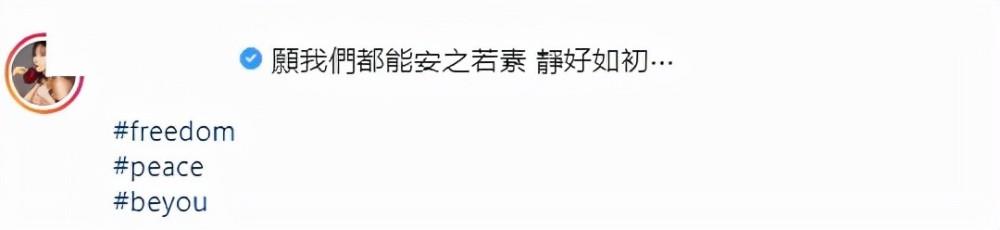 在李靓蕾揭发王力宏的第一天,侯佩岑也发文:愿我们都能安之若素,静好如初。其实她这是在对闺蜜李靓蕾喊话,希望大家都好好的,希望李靓蕾别再受到伤害。