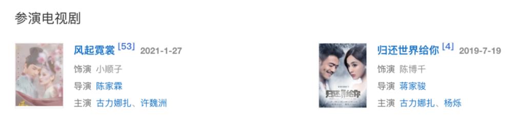 于斌自《陈情令》后只有两部剧上线,还都是非常小的角色。