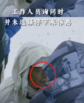 导演见状,立刻紧急喊停,工作人员也一一上前询问关心。但在适当调整后,章宇并未选择暂停拍摄,而是坚持继续拍戏。在近景画面中,我们能看到章宇眉毛、睫毛、胡子上,都结了一层厚厚的雪霜。