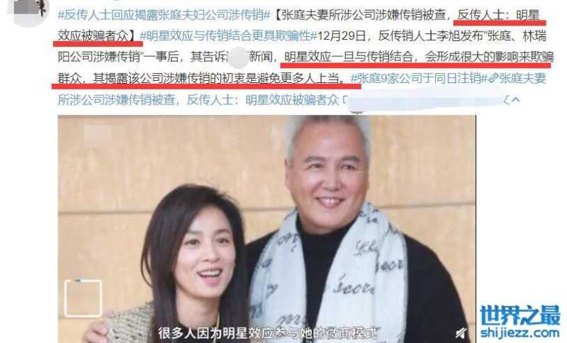 张庭和林瑞阳这对儿夫妻终于摊上事儿了!12月29日,多家媒体都有报道,林瑞阳张庭夫妇的日化品牌“TST庭秘密”运营主体达尔威公司因涉嫌利用网络从事传销活动被查处。