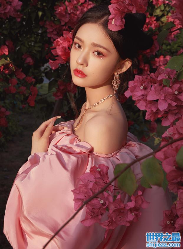 星女郎林允穿着粉色露肩花苞裙元气可爱,珍珠眼妆颇有美人鱼的感觉,一双眼睛彷佛在闪闪发光,身边花团锦簇,像是从花园里走出来的小公主。