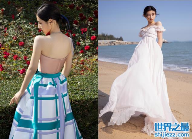 95后小花张子枫一身粉色抹胸蓝格长裙,露出光滑的美背和细窄的腰,搭配清新小发带和精致的妆容,整个人宛如从油画里走出来的温柔少女。而开幕式时的抹胸白粉色纱裙灵动飘逸,流露出一种安然淡雅的美感。