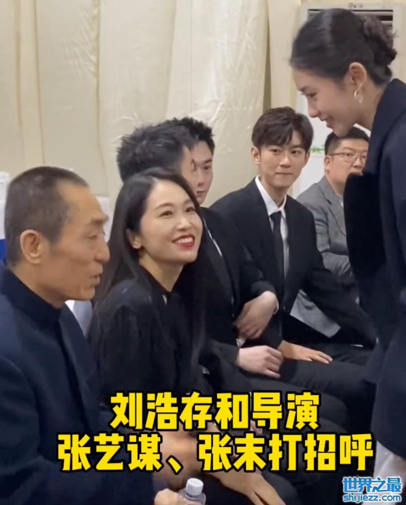 在后台,她遇到了恩师张艺谋和张艺谋女儿张末。张艺谋看到刘浩存很开心,还热情的招呼她,让刘浩存坐在自己旁边的空位上。