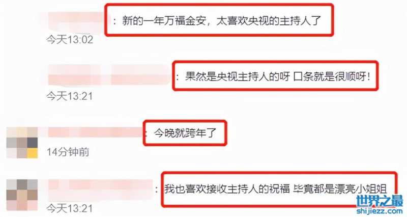 网友们得到央视主持人们祝福后很开心,纷纷评论道:“新的一年万福金安,太喜欢央视主持人了”,更有直接说明喜欢央视主持人原因:“我也喜欢支持人的祝福,毕竟都是漂亮的小姐姐”,这回答也是很真实了。