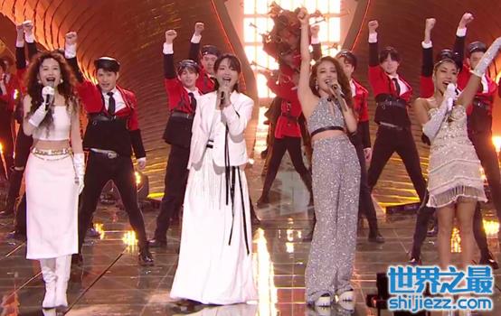 周笔畅还和另外3位女星同台献唱了,她一身白色长袖长裙,吉克隽逸一身亮片短裙,虽然穿成了两个季节,但都很有活力。