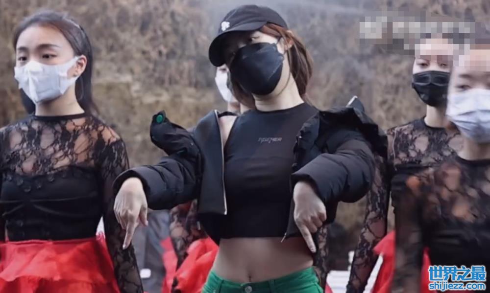 练习过程中,李菲儿由于天气寒冷又穿上一件短款羽绒服。她戴着黑色鸭舌帽歪头,加上双手指地的动作飒气十足。