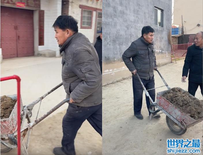 大衣哥朱之文干活被邻居围观,穿衣朴素身材臃肿, 一车 土轻松推走 ...