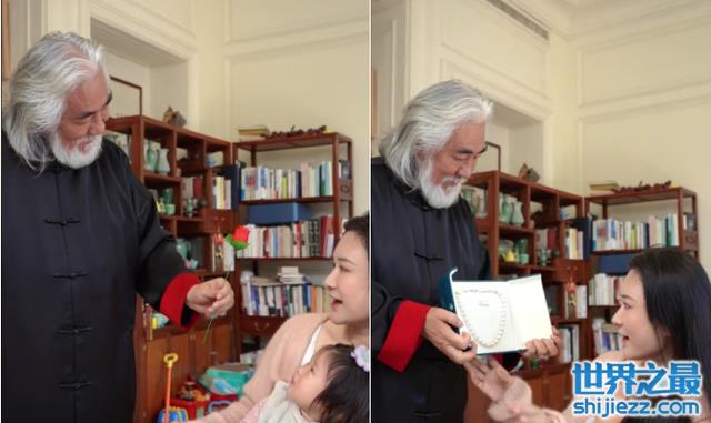 在另外一条视频中,张纪中给杜星霖变魔术,将火苗变成了一支玫瑰花,杜星霖和女儿十分惊喜。随后张纪中又拿出了一个蓝色首饰盒,打开后里面装了一条珍珠项链,张纪中将珍珠项链送给了老婆,杜星霖非常感动,眼眶里满含泪水。