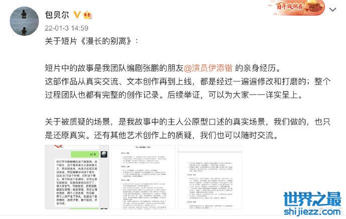 包贝尔回应关于自己短片《漫长的别离》抄袭事件,而且他的最新回应却并没有得到大家的拥护。