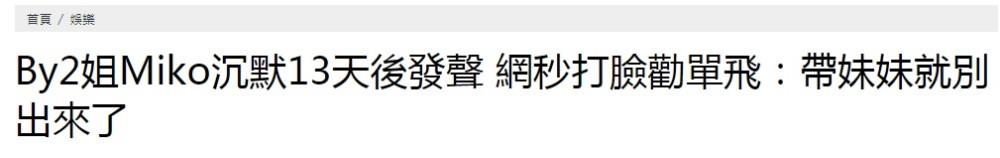 大家是这样子留言的“如果你还是要带着妹妹Yumi一起做事业,那么你们就别再出来了,你们两个人不允许在一起了”“妹妹别坏了姐姐,单飞吧,miko”“不要一起出来了,解散吧,BY2已经臭了”!