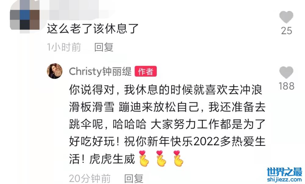 其中有一个网友的留言十分扎眼,认为钟丽缇年纪大应该休息。她也出面回应称这位网友讲得对,我休息的时候就进行运动放松自己,大家努力工作是为了好好生活。高情商的回答同样圈粉不少人。