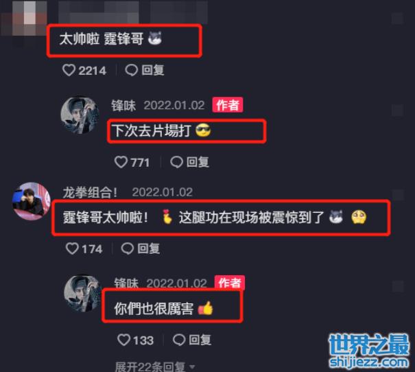 网友们被谢霆锋的这一技能给惊喜道,纷纷评论道:“太帅啦,霆锋哥”,谢霆锋调侃道:“下次去片场打”。还有龙拳小子评论道:“霆锋哥太帅了,这腿功在现场就被震惊到”,谢霆锋谦虚回复:“你们也很厉害”。