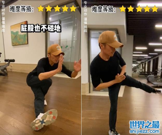 他还在视频上备注这个挑战有五颗星难度,看来十分困难。但是谢霆锋慢慢下蹲后双手合十,直接就做好这个单腿下蹲的动作。