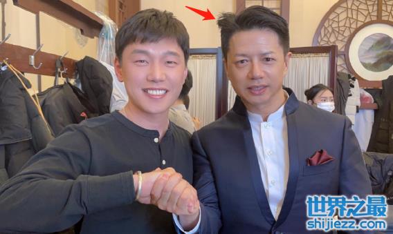 现场的工作人员晒出了和段奕宏的合照,只见段奕宏一身深色西装笔挺,胸前点缀着酒红色丝巾,五官帅气男人味十足,但有趣的是段奕宏左边的头发有一丝凌乱,看起来有一点可爱。段奕宏和旁边工作人员的手紧握在一起,工作人员笑容满面。