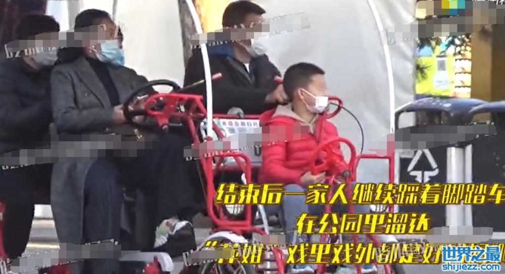 在公园内,一家三口为了方便游玩,甚至还租了一辆人力单车,夫妻两人把孩子放在最前座,两人在后边卖力地蹬着踏板,完全看不出一点明星的样子。