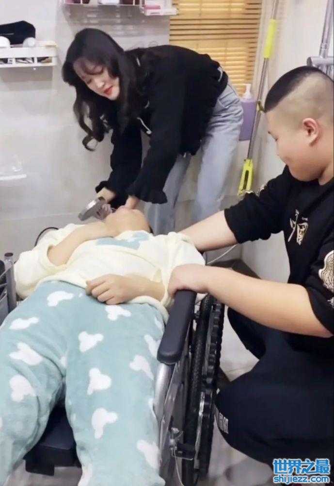 近日,草帽姐刚刚出院,因为不方便走路,儿子负责抱着她去洗手间,儿媳妇则很细心儿她洗头发。